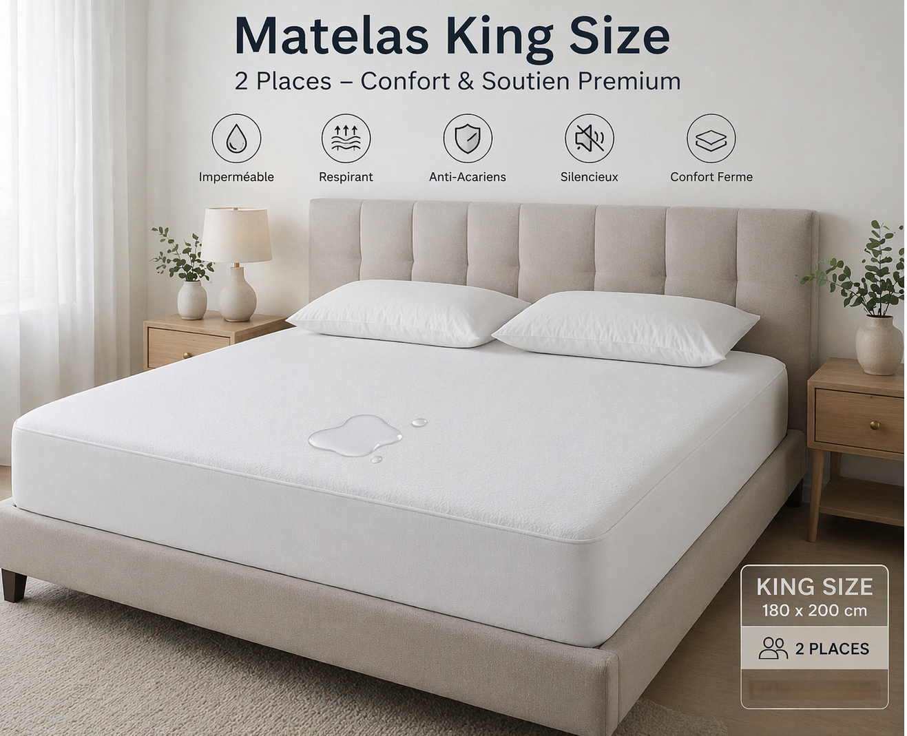 Protège matelas anti fuite 180×200 : Anti fuite 2 places & King Size Algérie